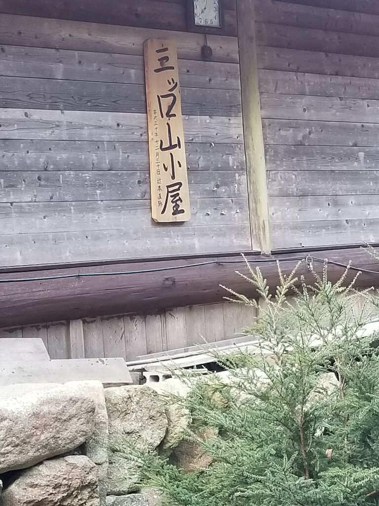 山小屋には、看板がかかっています。