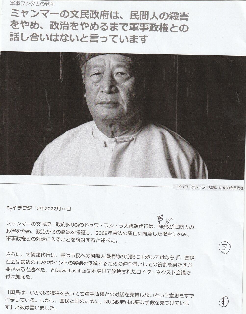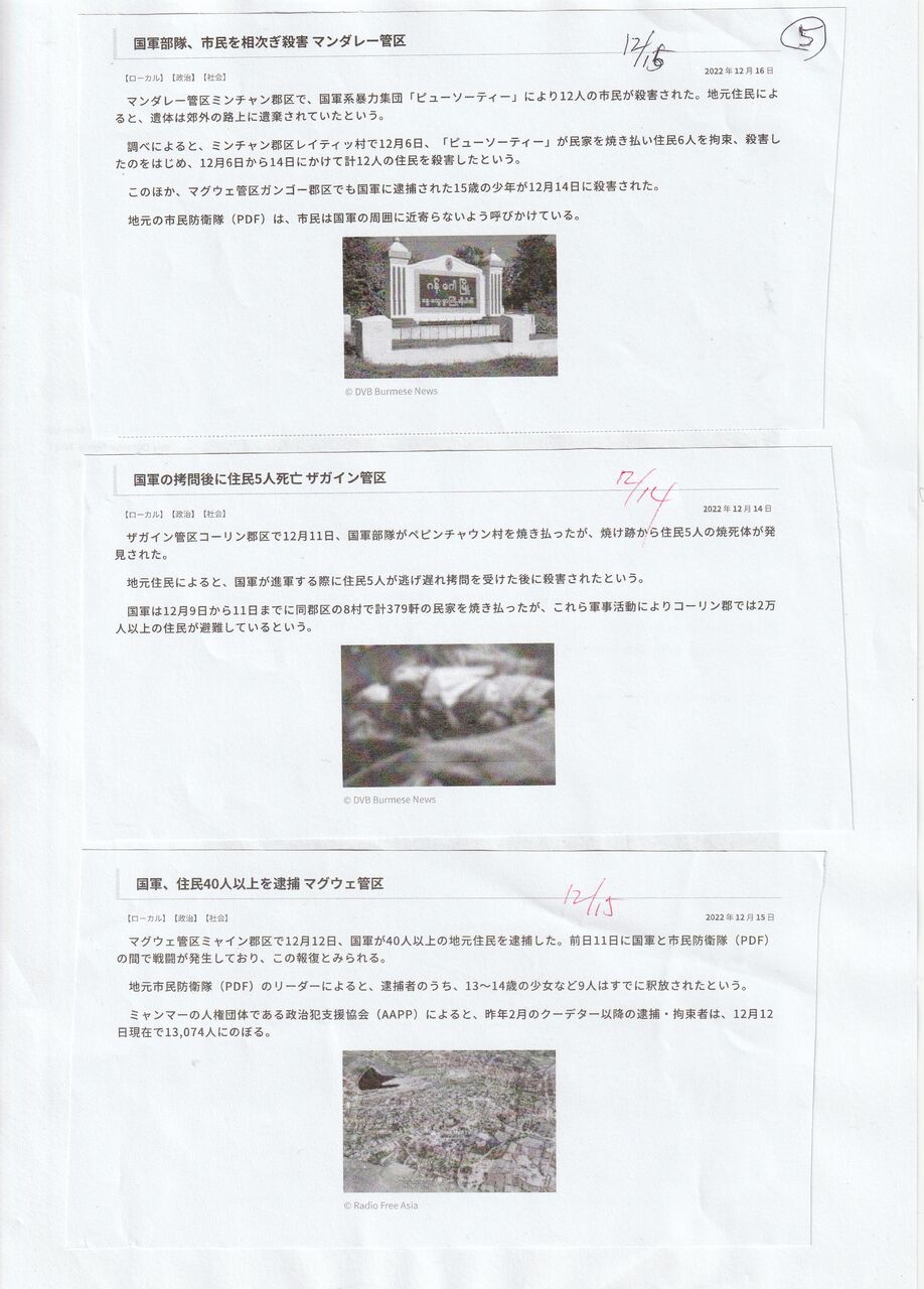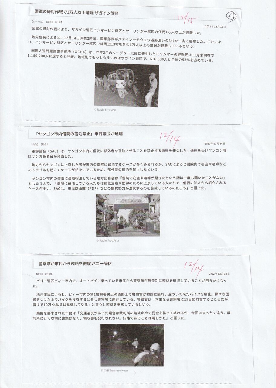 カチン独立軍の政治部門のカチン独立機構(KIO)の副議長であるガン・モウ将軍は、ラジオ・フリー・アジアのインタビューに答えた。これが12月15日に公開された。上のイラワジの記事は、それの紹介です。KIOは、記念コンサートで、国軍の空爆で、75人以上が殺され、60人以上が、負傷という打撃を受けている。=(アナンバ空爆)